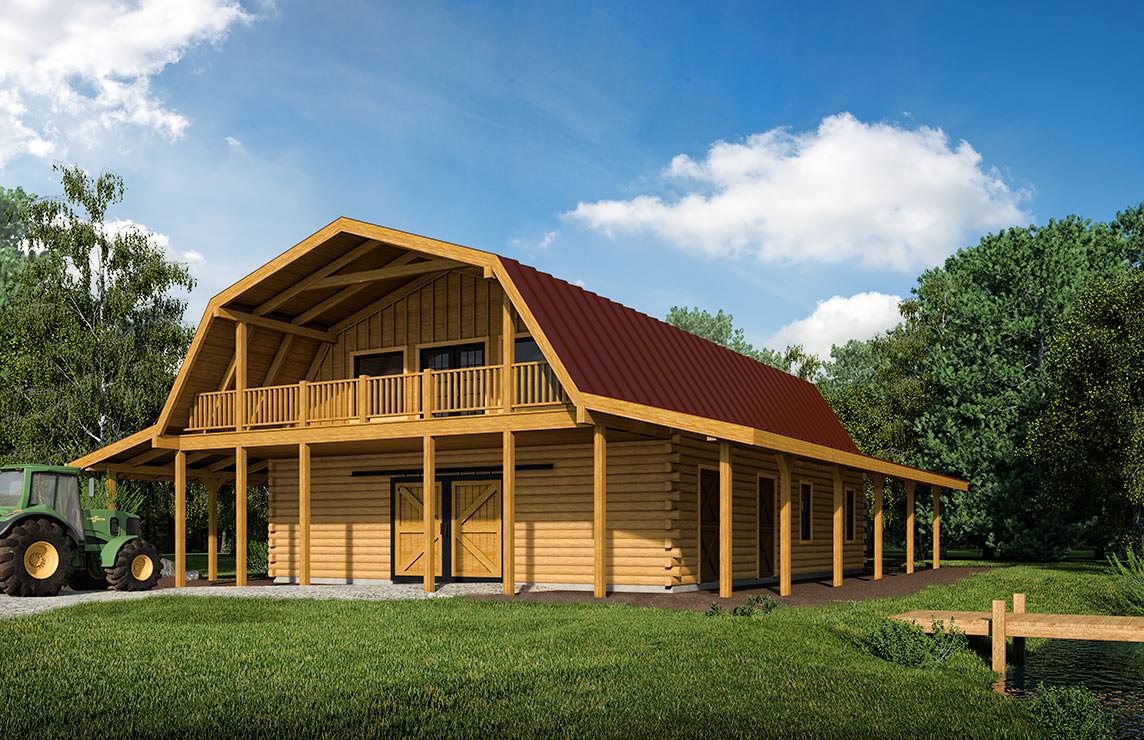A surprising number of people begin development of their property by building a log barn, perhaps planning to build their log home at a later date, or timed for retirement. Some of our log barn designs include an apartment in the loft space, which can serve as a 2nd home, guest quarters, or even a primary residence.