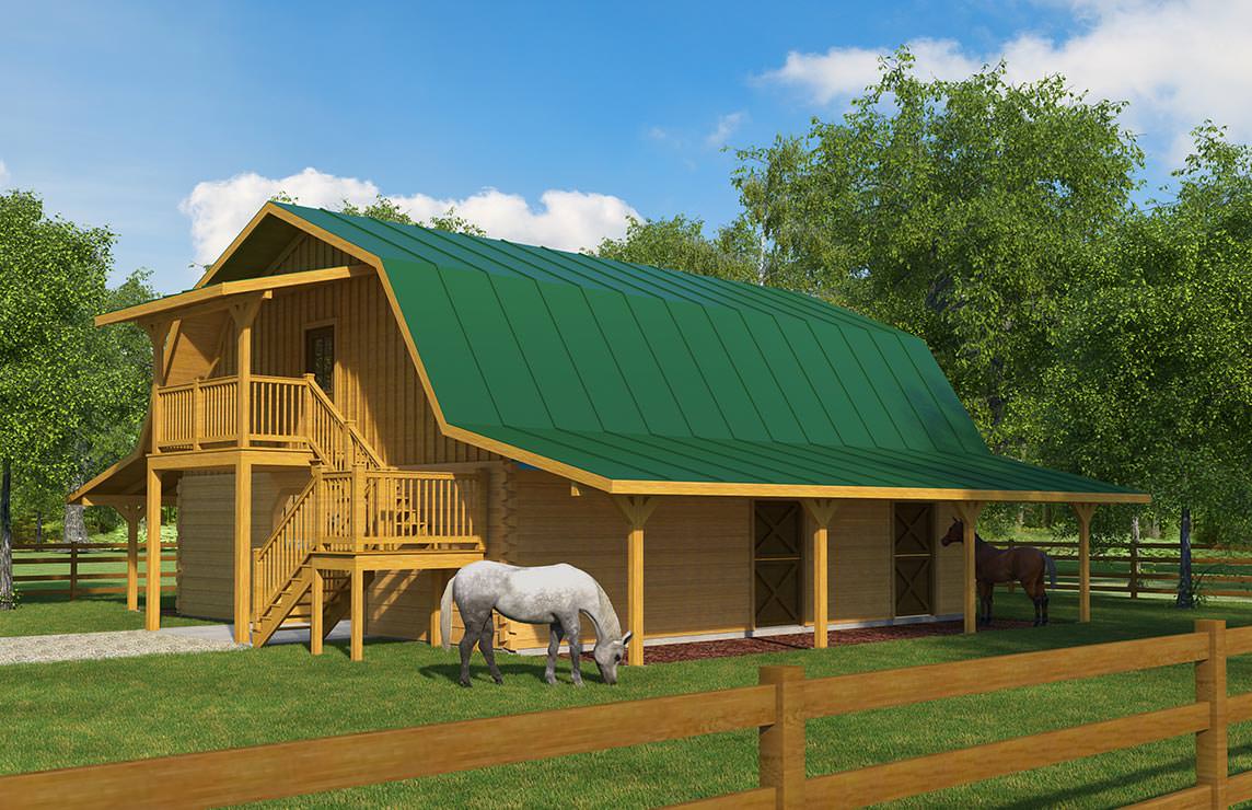 Log barns are the perfect complement for a log home and add useful utility space for equipment and machinery, or they can be finished out for horse or livestock care.