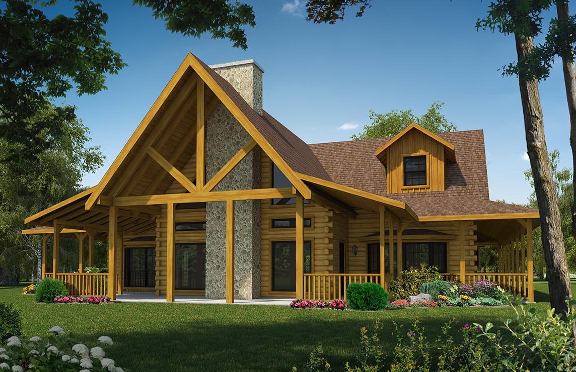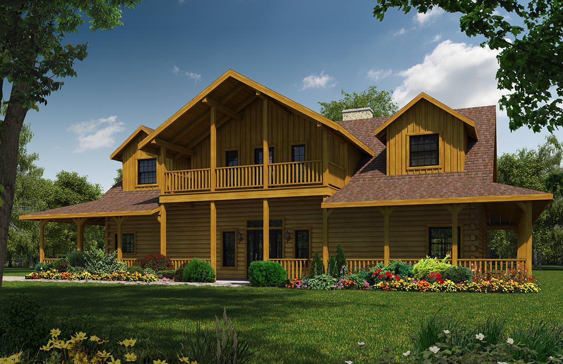 The Stone Ridge is the largest of the three bedroom designs from Satterwhite's standard floor plan series. Both the front and read appoaches offer imposing elevations - one with a central fireplace, the other with a second floor balcony that is accessible from a loft play room or office space inside.